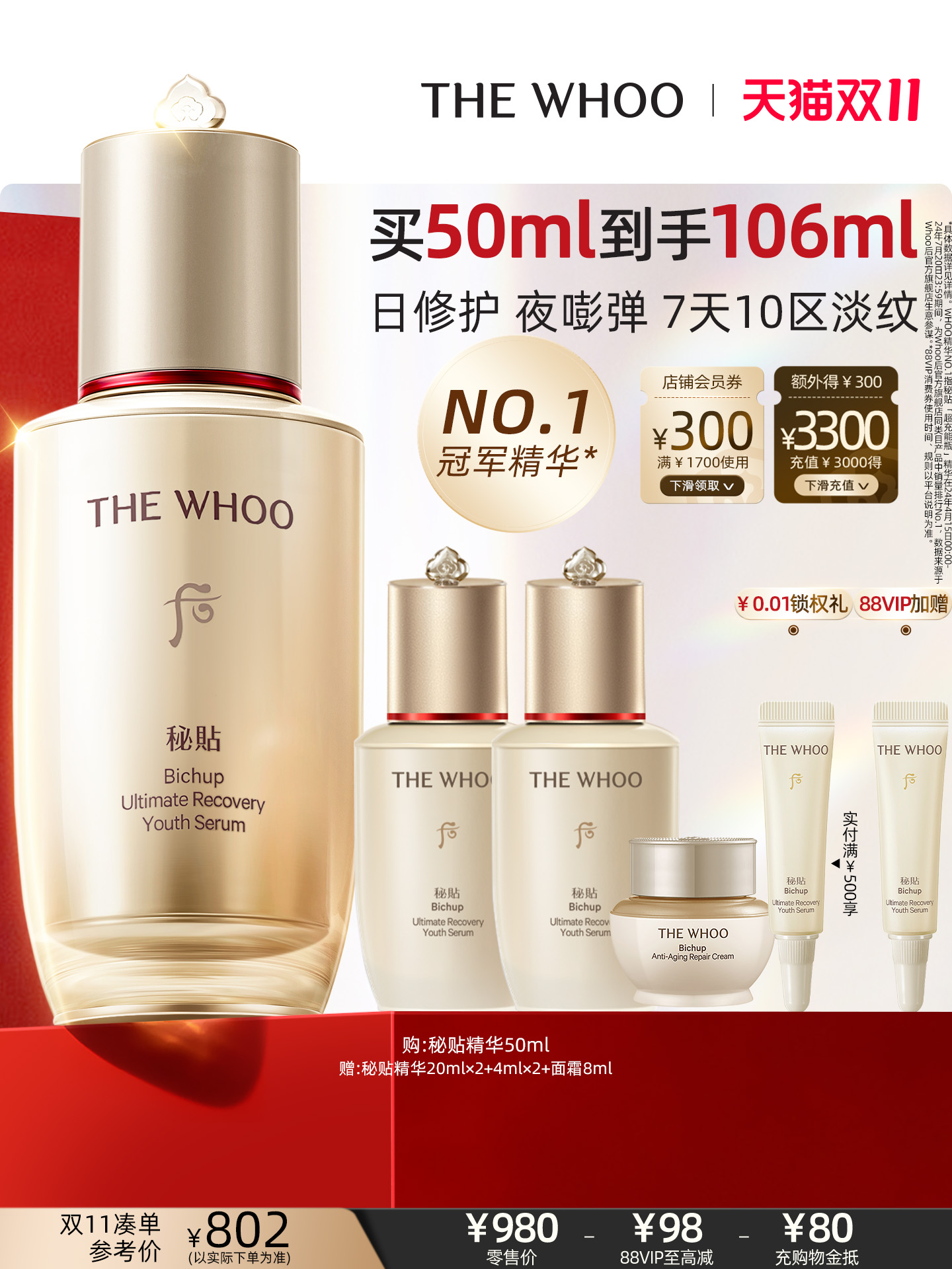 【双11现货立抢】Whoo后秘贴精华限定礼盒抗皱修护强韧修护NAD