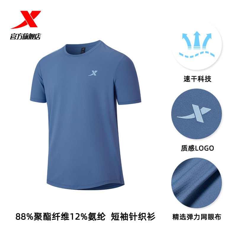 特步速干T男夏季宽松短袖冰丝户外跑步T恤透气上衣男士健身运动服