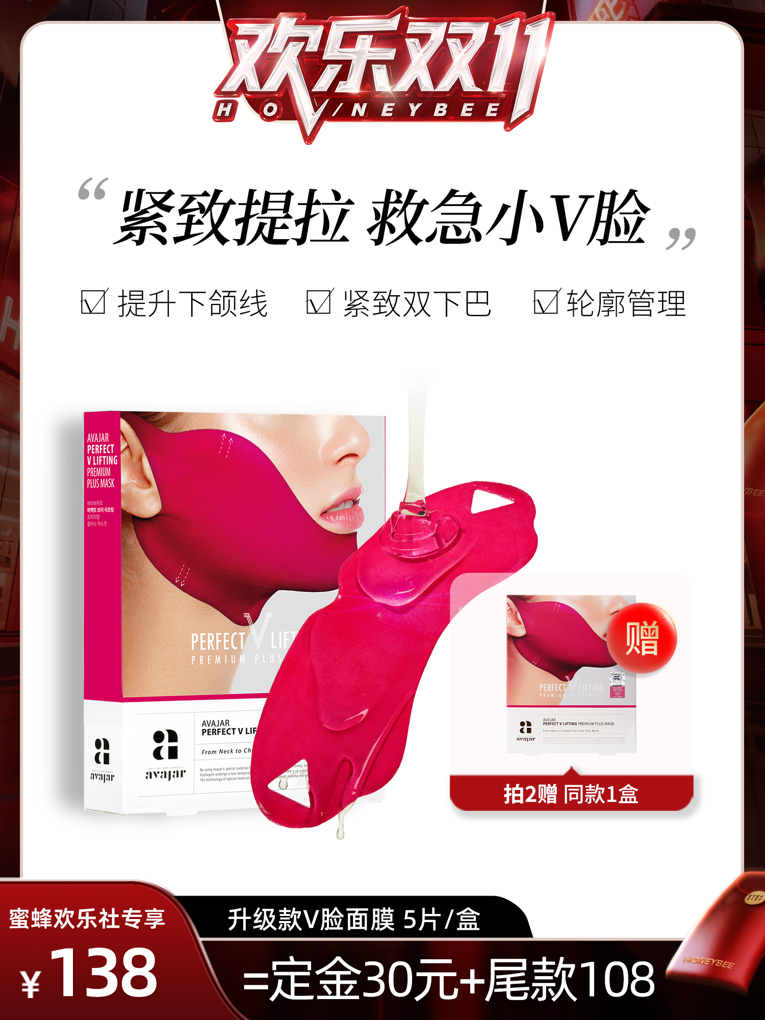 【蜂狂双十一】韩国AVAJAR美法扎小V脸提拉面膜紧致下颌下巴绷带