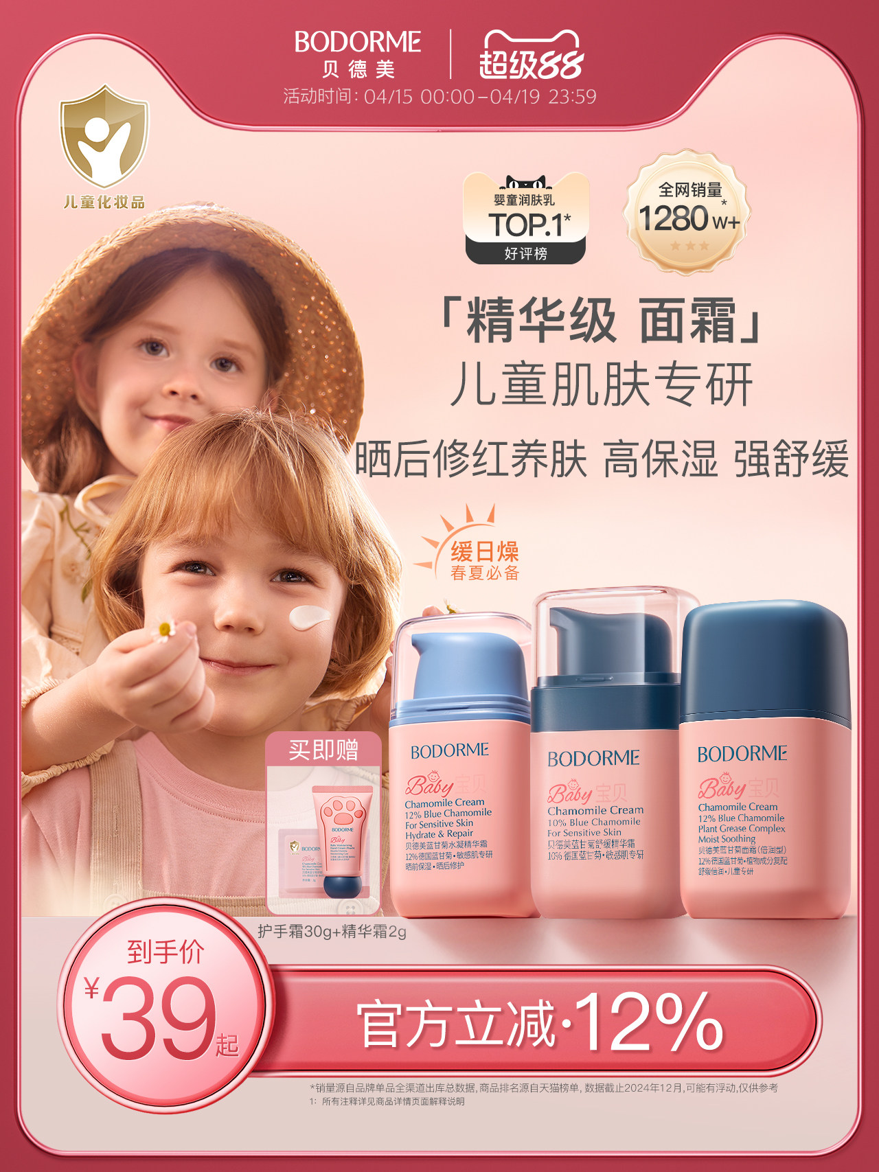 贝德美儿童春夏面霜宝宝婴儿面霜保湿滋润肤霜蓝甘菊擦脸护肤乳液
