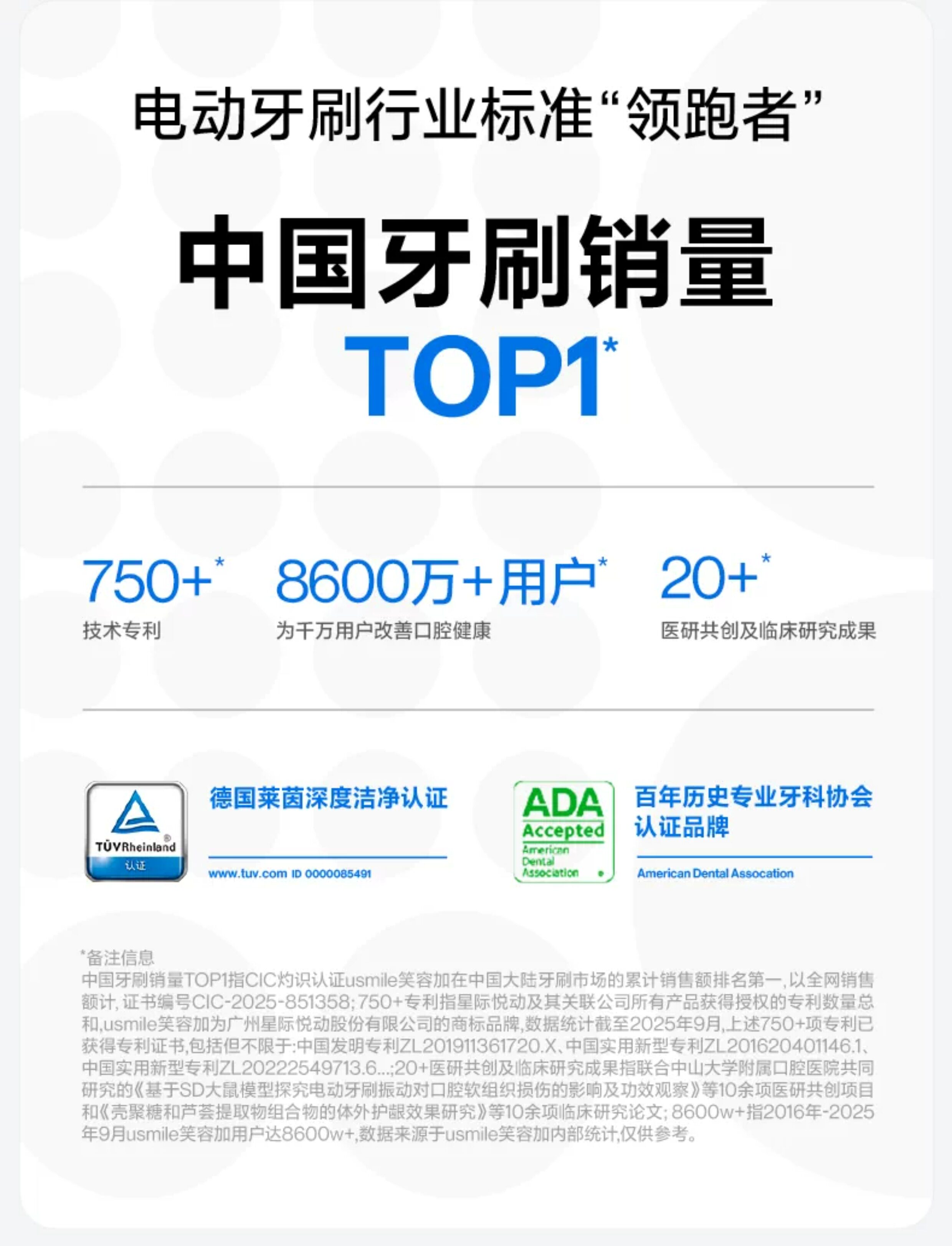 笑容加usmile扫振电动牙刷全自动成人生日情侣套装礼物男女微P20