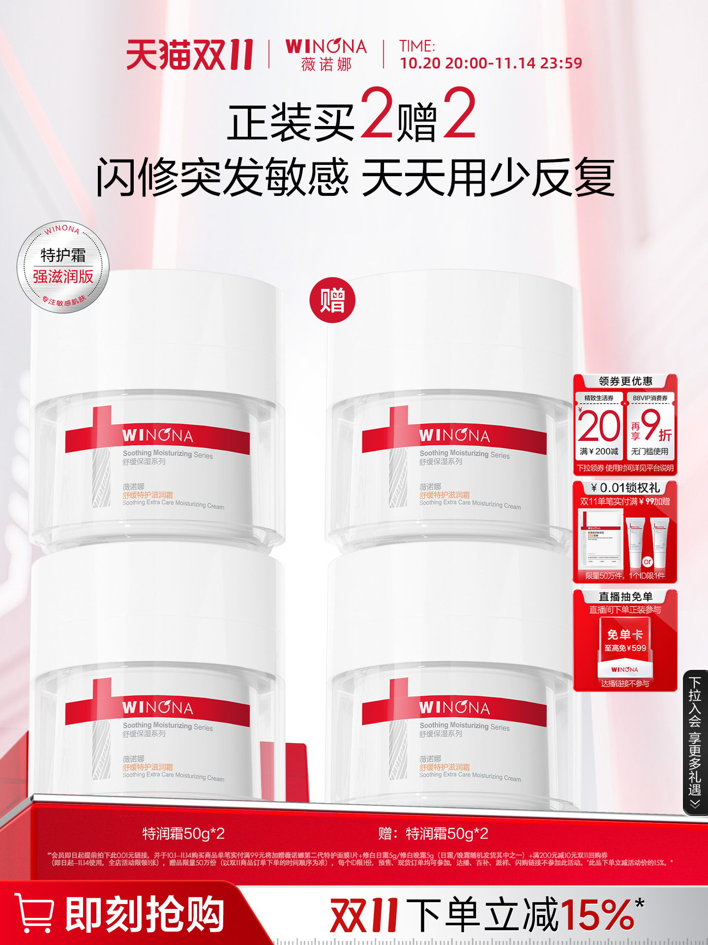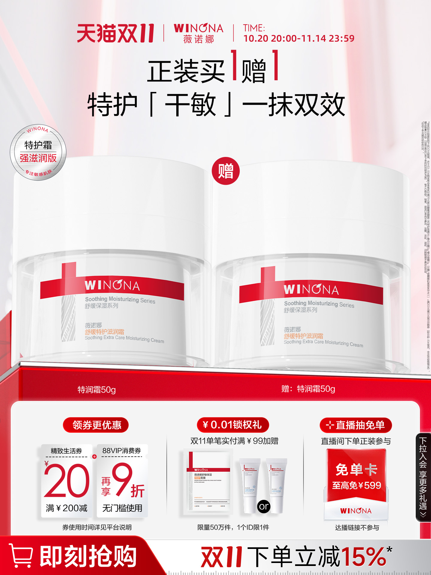 【双11狂欢购】薇诺娜舒缓特护滋润霜50g 干敏肌面霜保湿舒敏