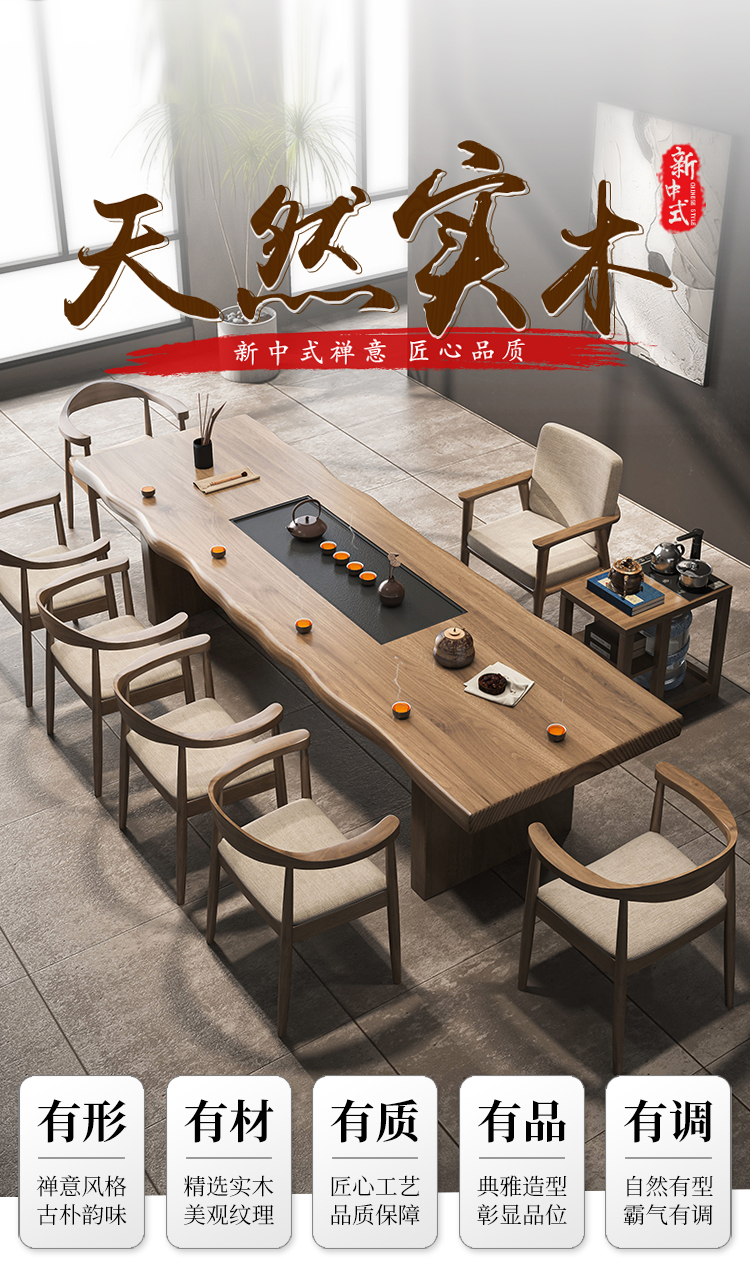 实木茶桌茶盘一体泡茶桌椅组合2025新款高端家用大板茶台轻奢原木