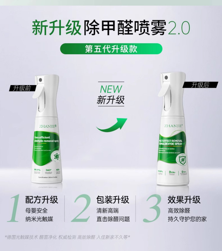 德国光触媒除甲醛神器新房急入住家用去异味新车吸甲醛喷雾清除剂