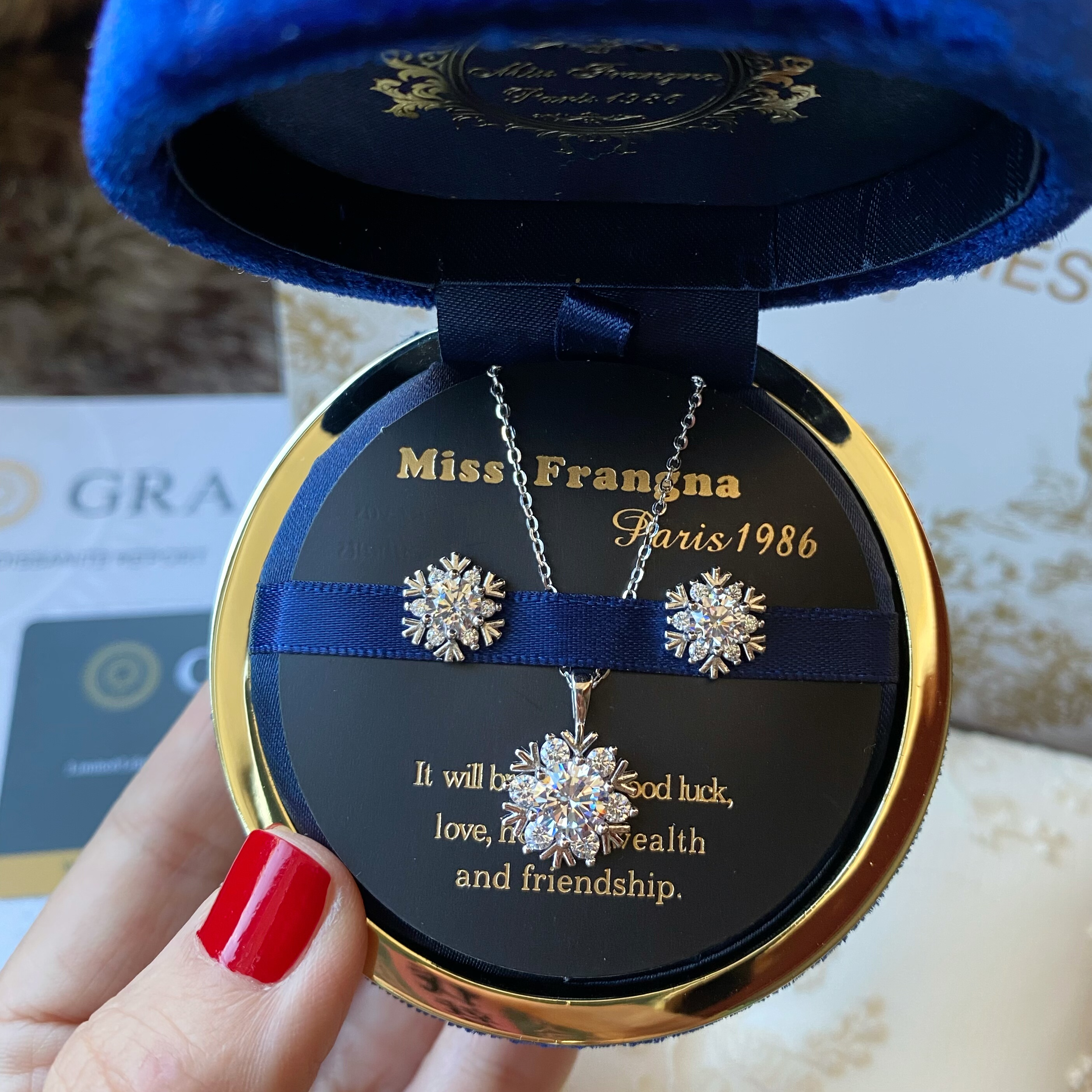 法国设计师MissFrangna爆闪GRA莫桑石钻纯银s999雪花轻奢礼物项链