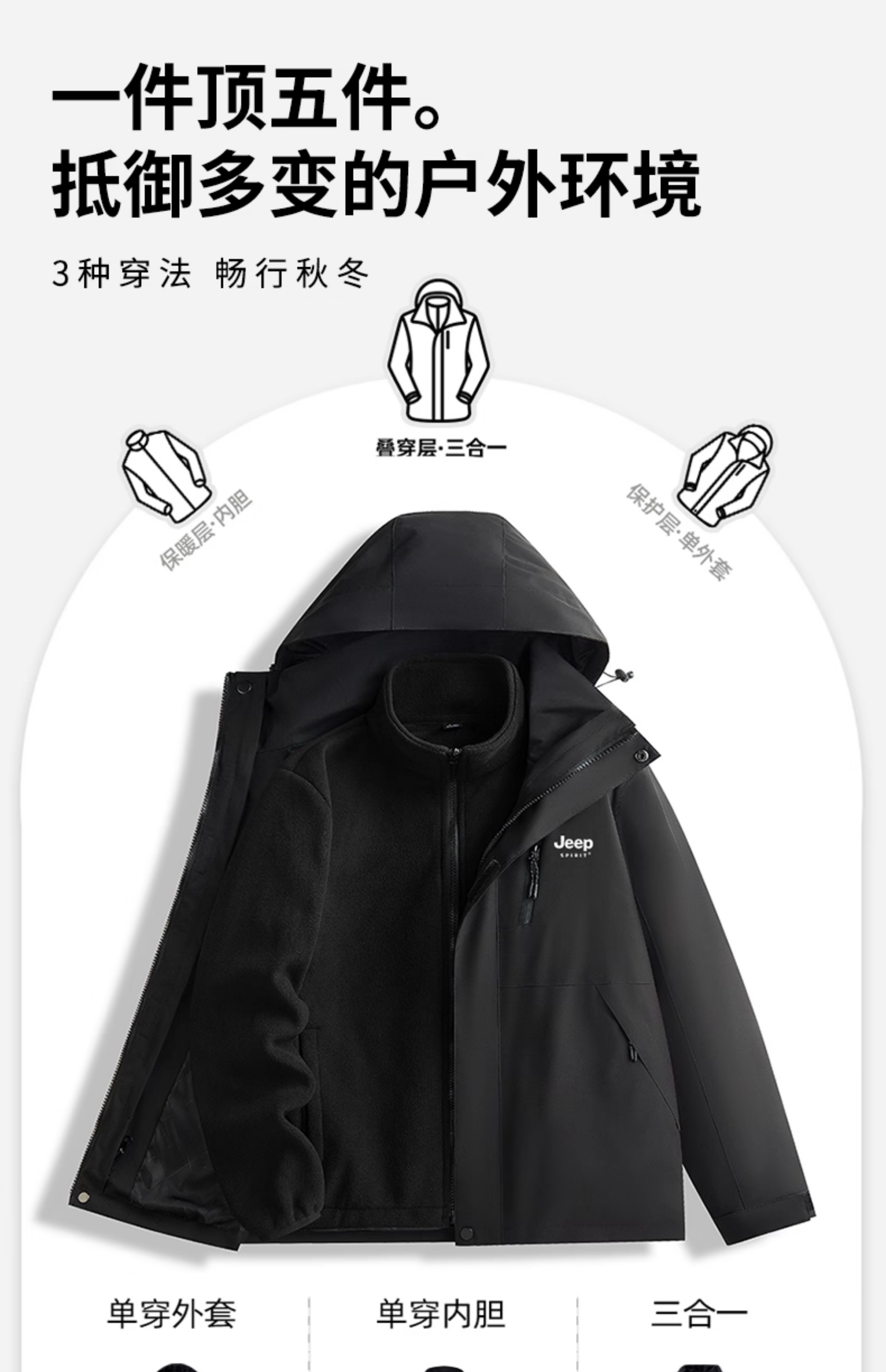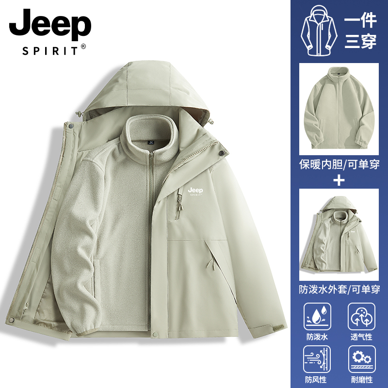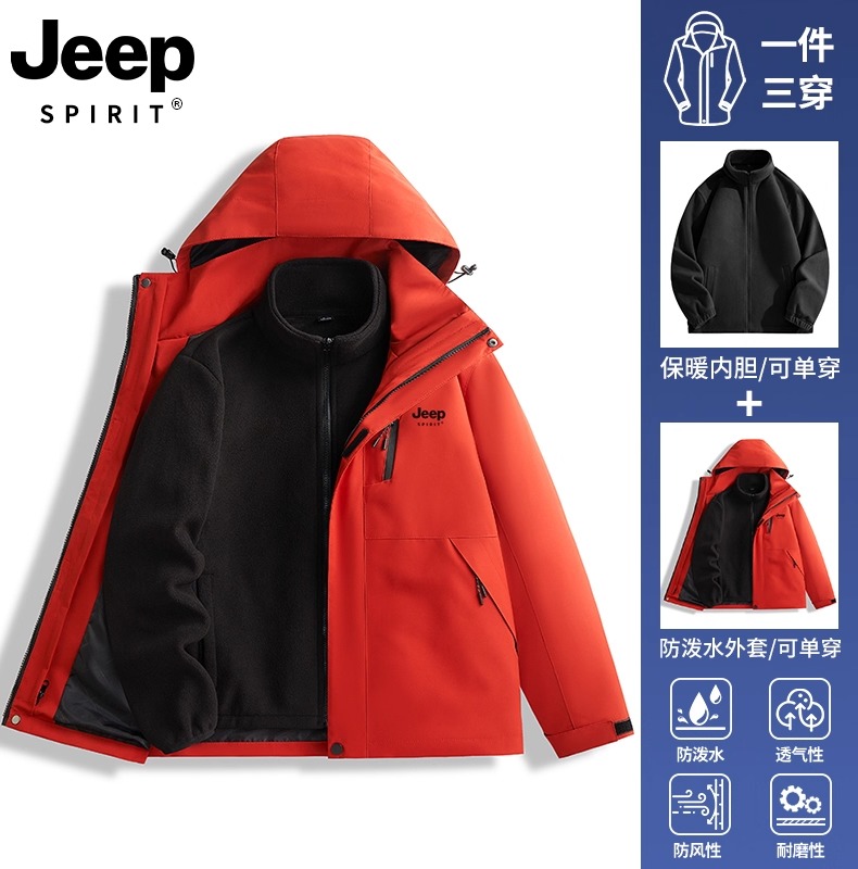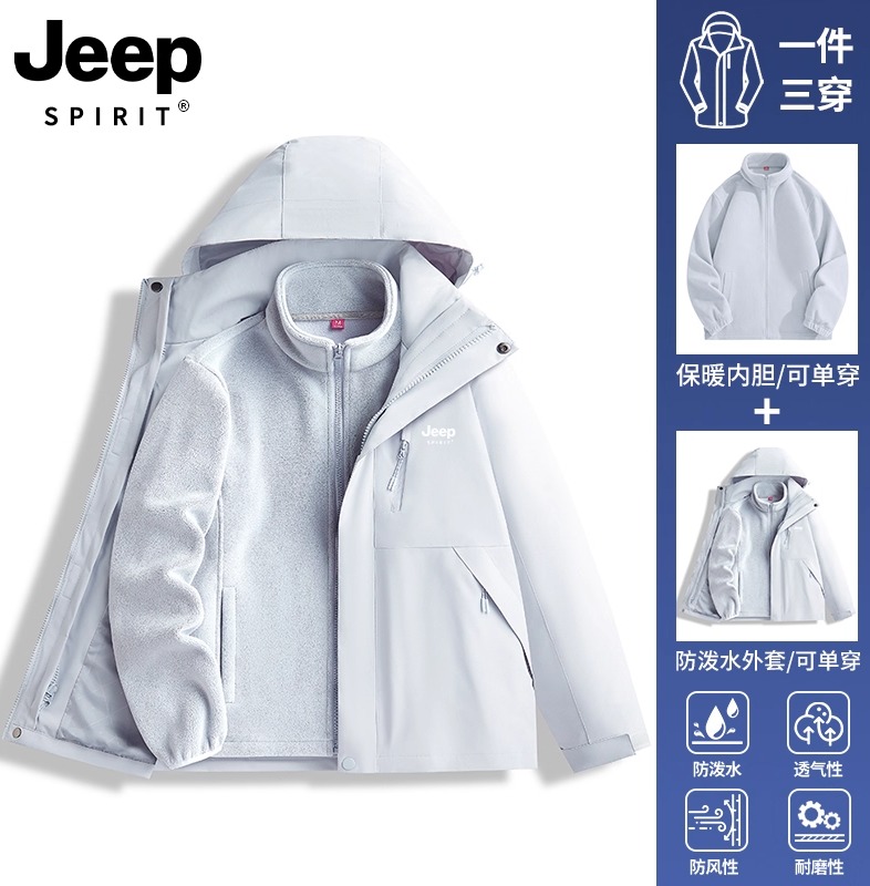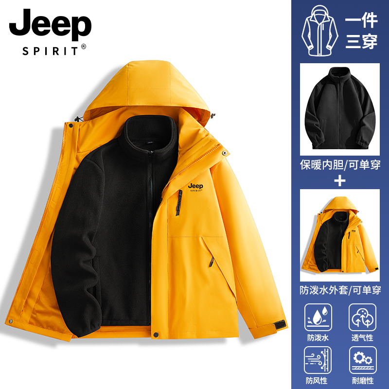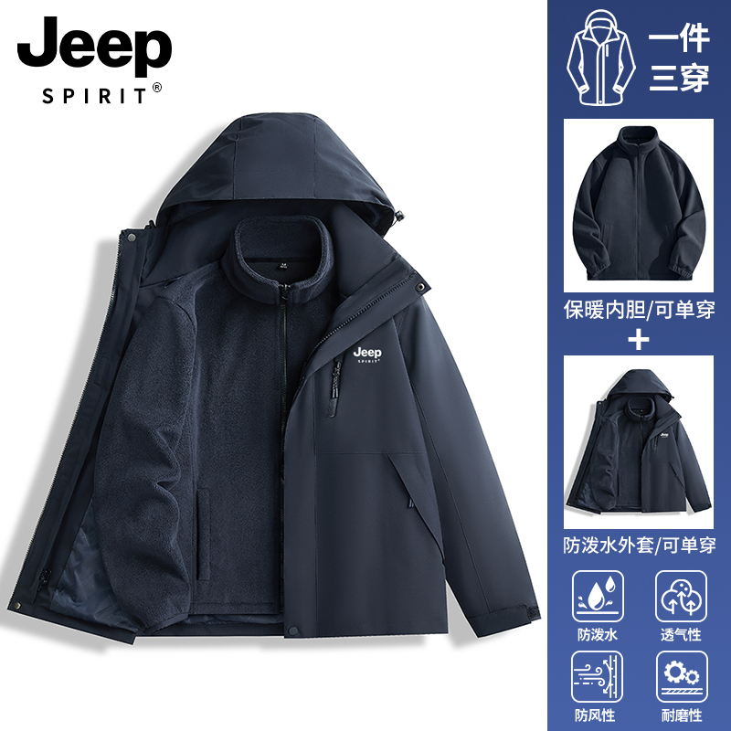 JEEP SPIRIT羽绒冲锋衣男女新款秋冬季超好看三合一户外加厚外套