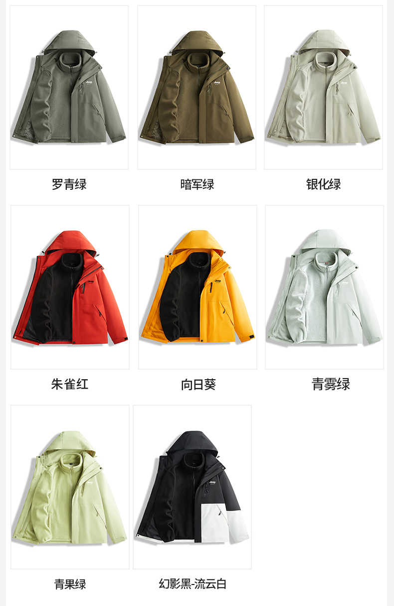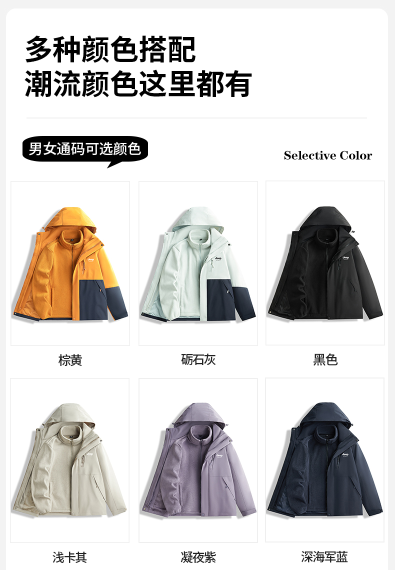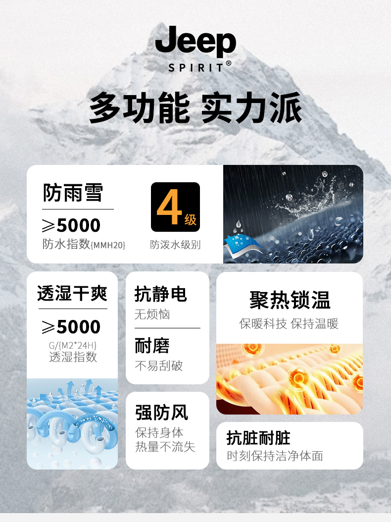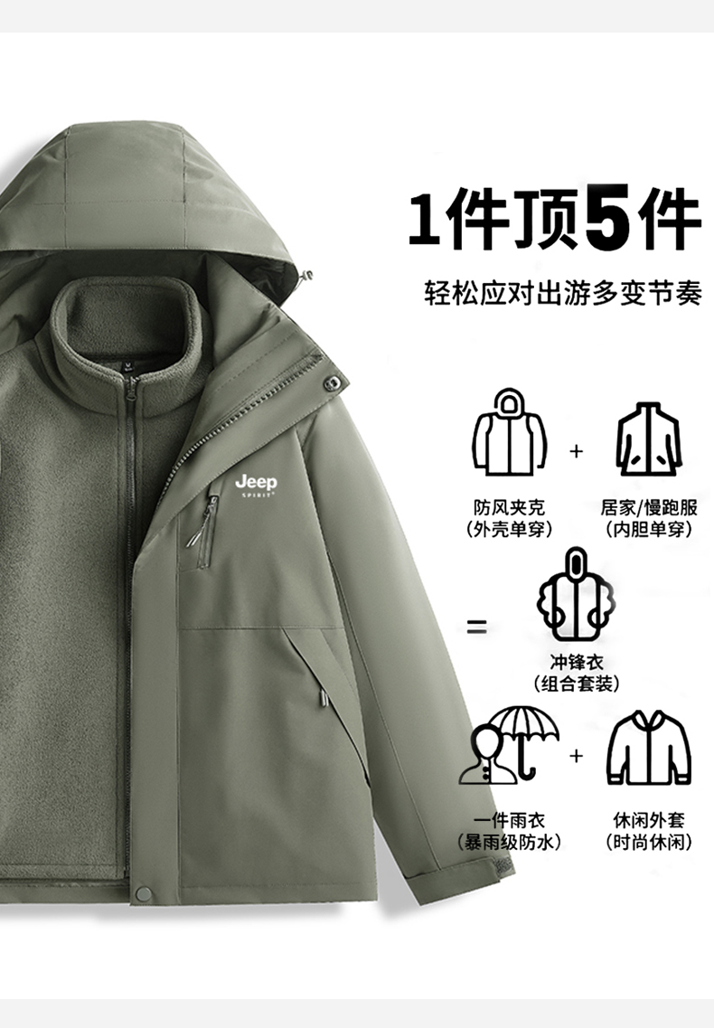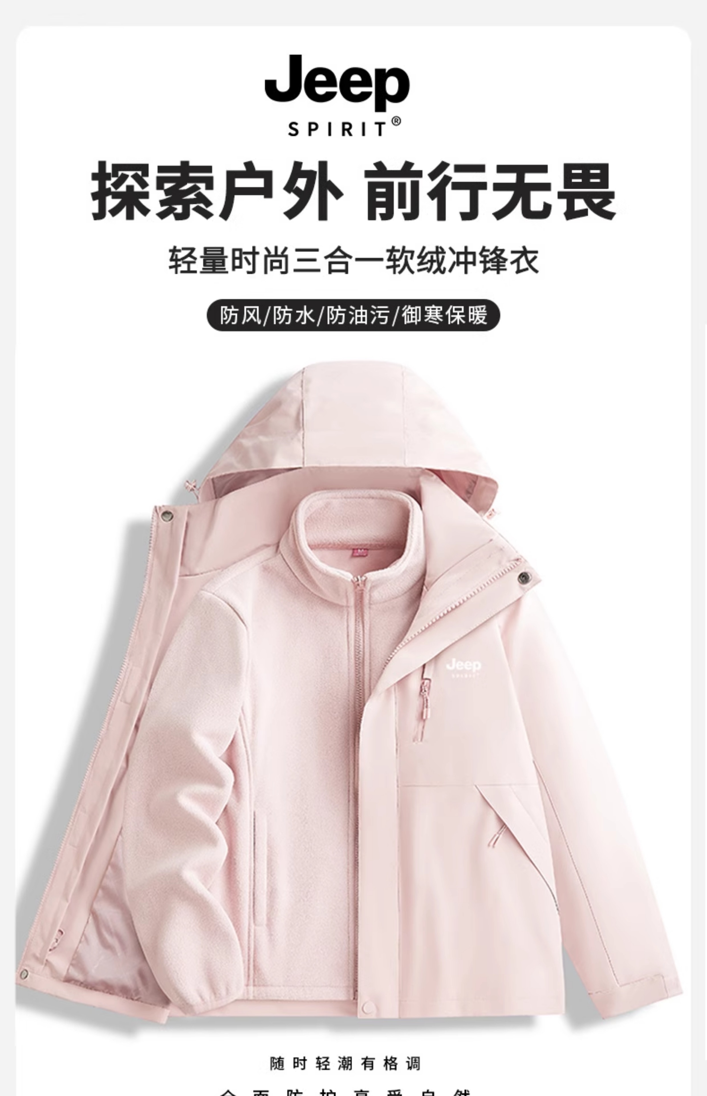 JEEP SPIRIT羽绒冲锋衣男女新款秋冬季超好看三合一户外加厚外套