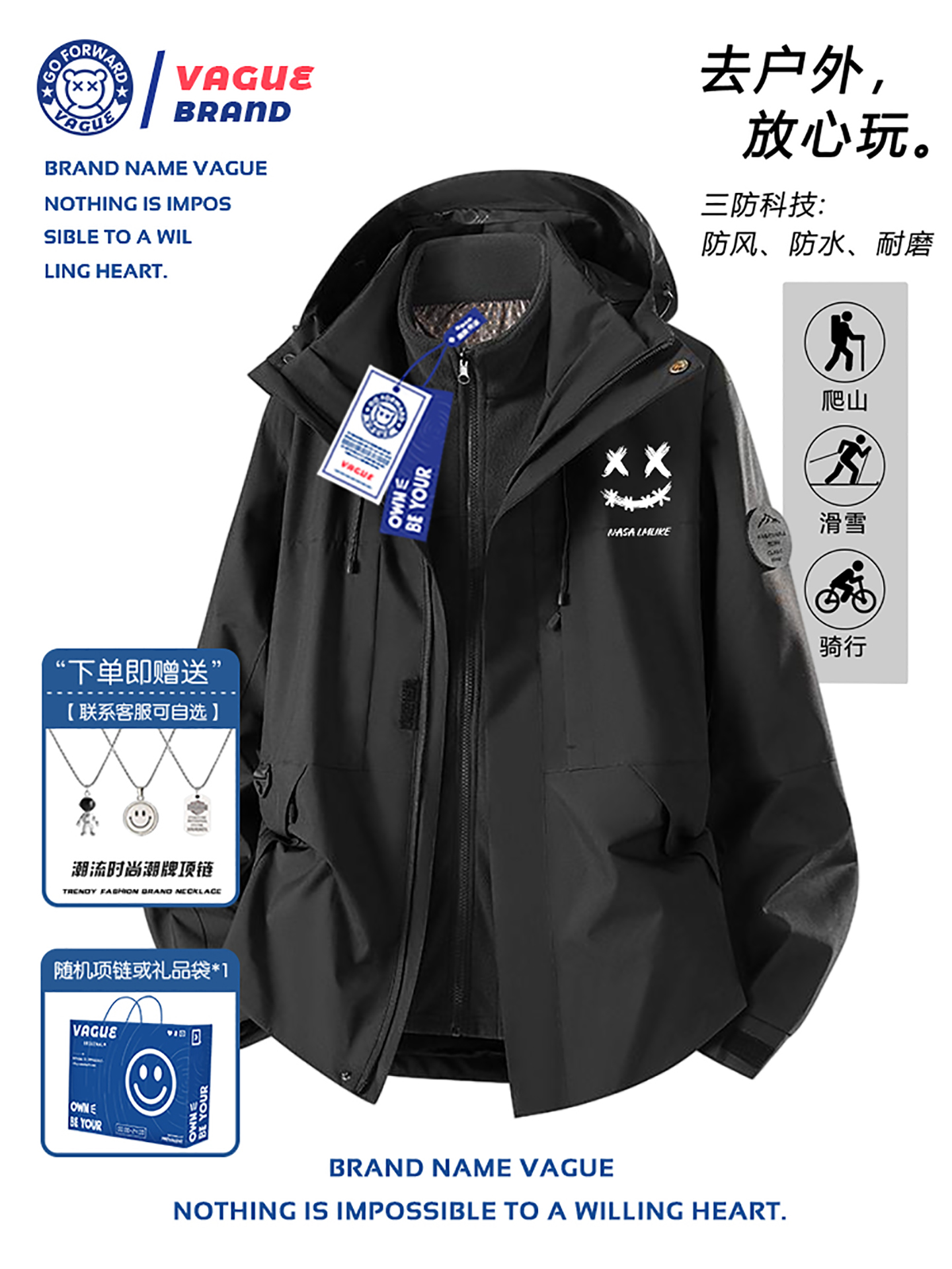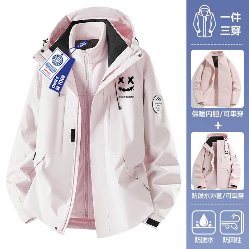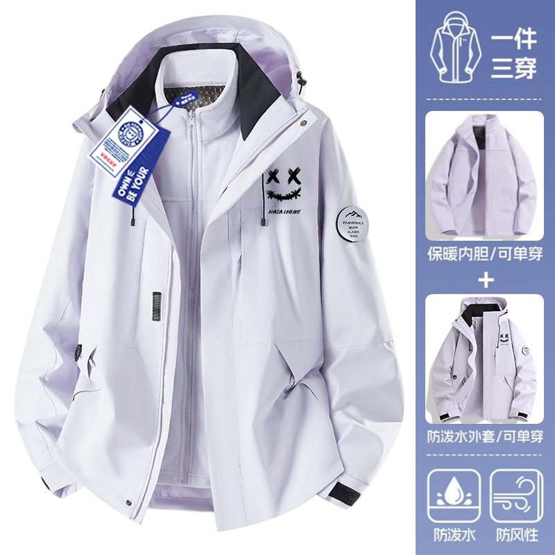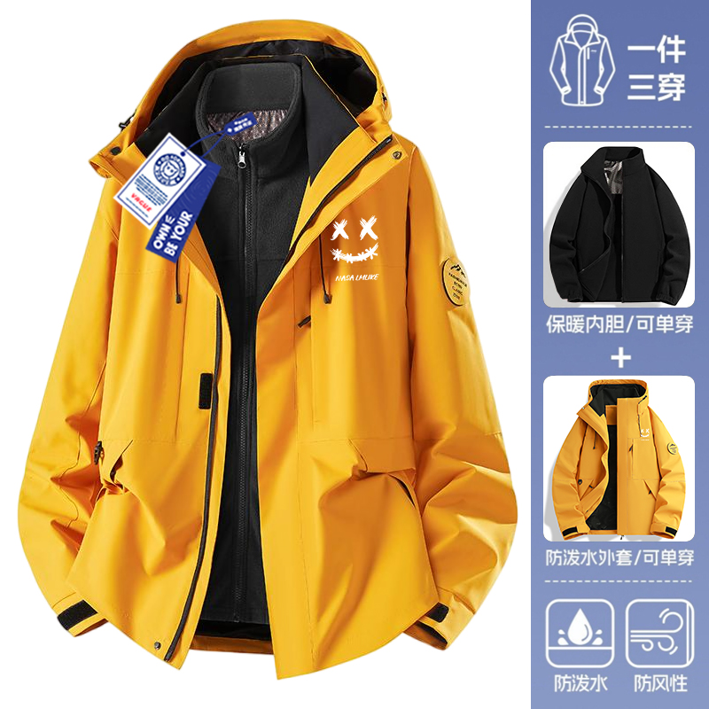 NASA联名潮牌冲锋衣男款秋冬季新款户外三合一可拆卸登山服外套女