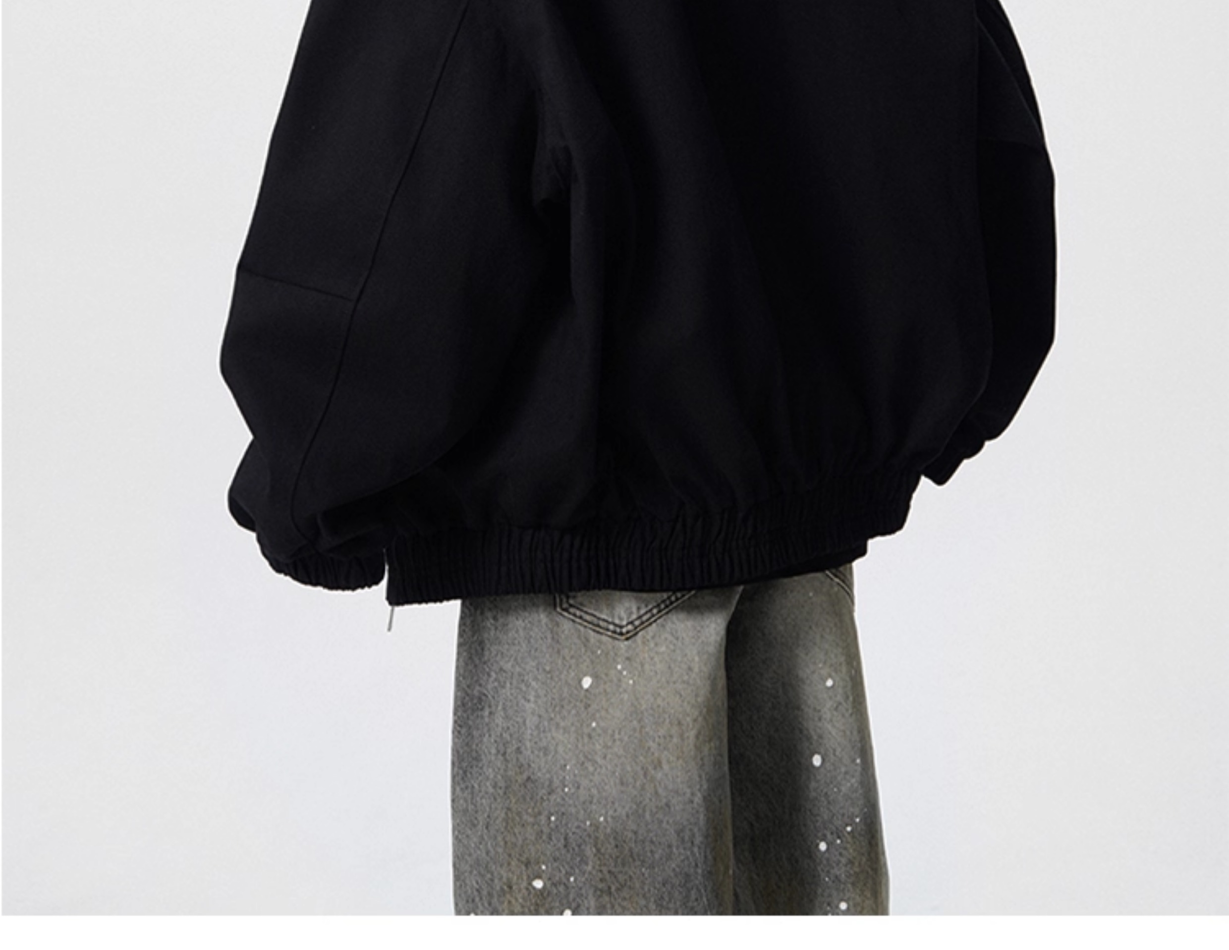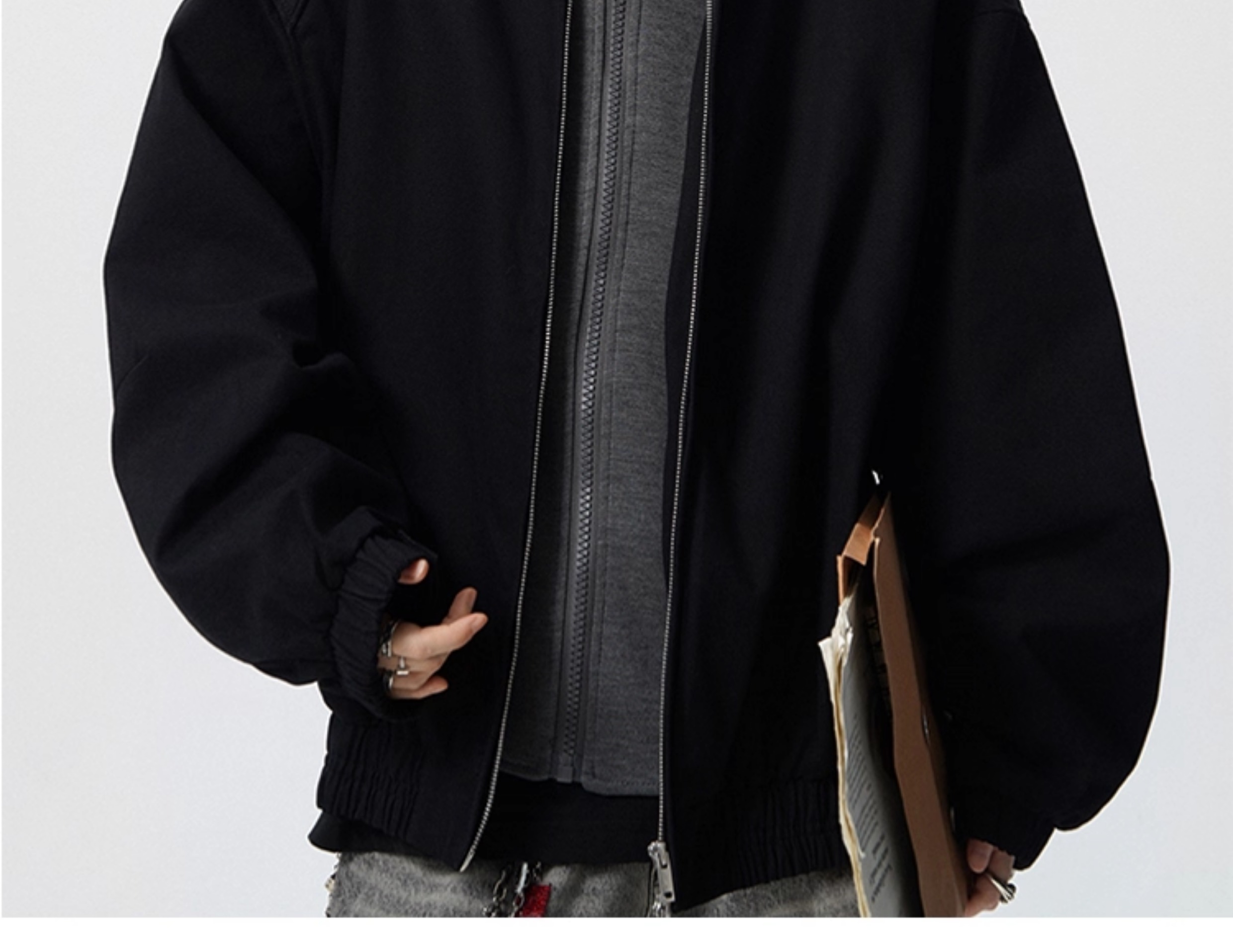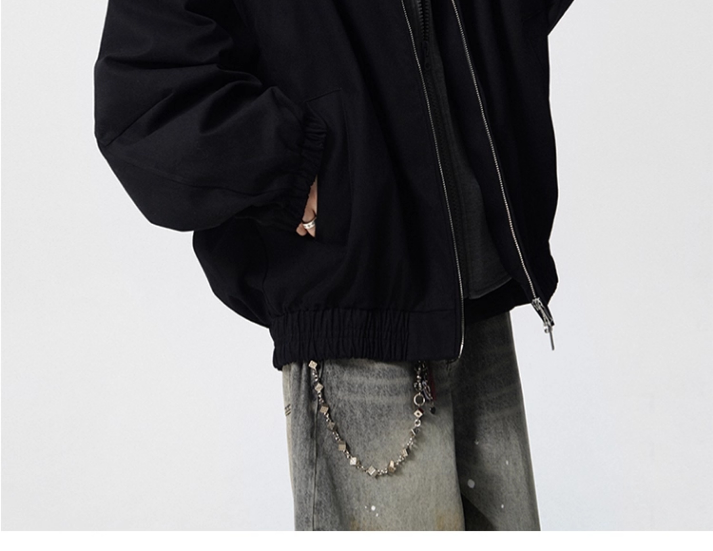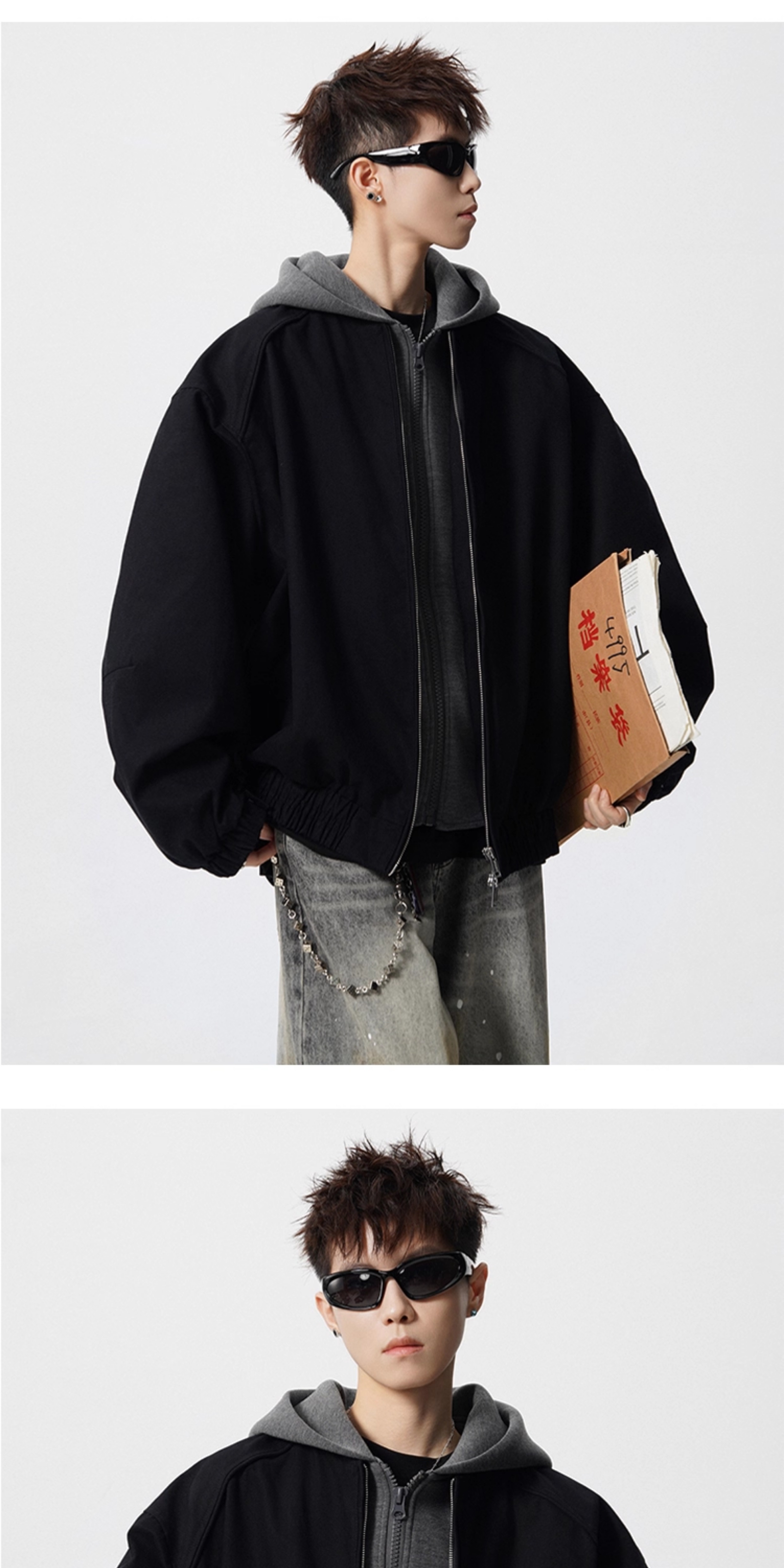 假两件撞色连帽外套男秋冬新款美式街头痞帅百搭休闲黑色飞行夹克