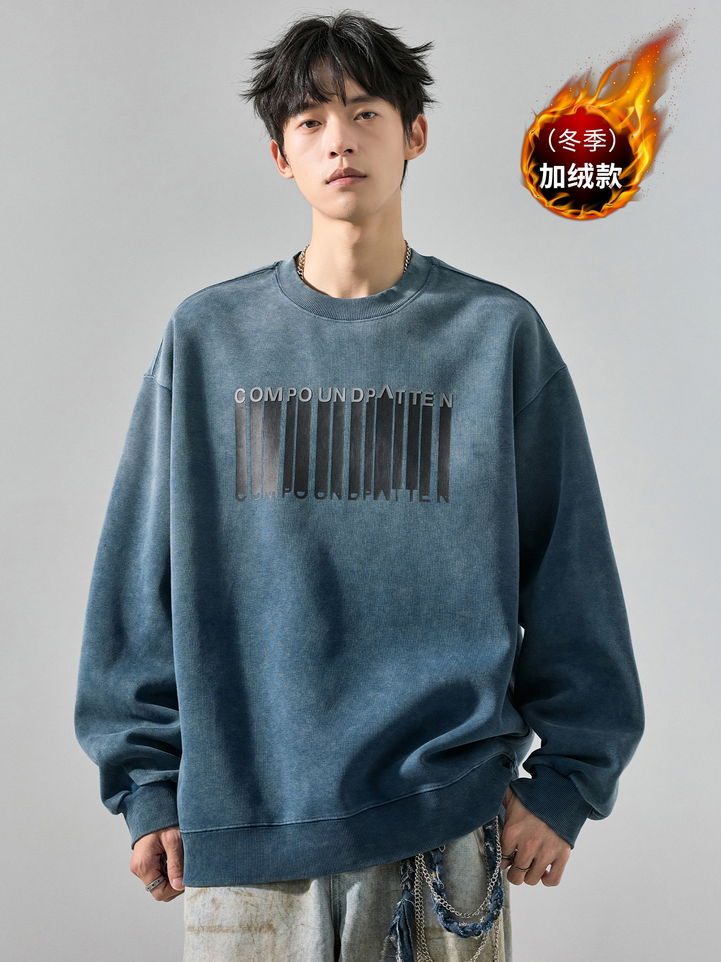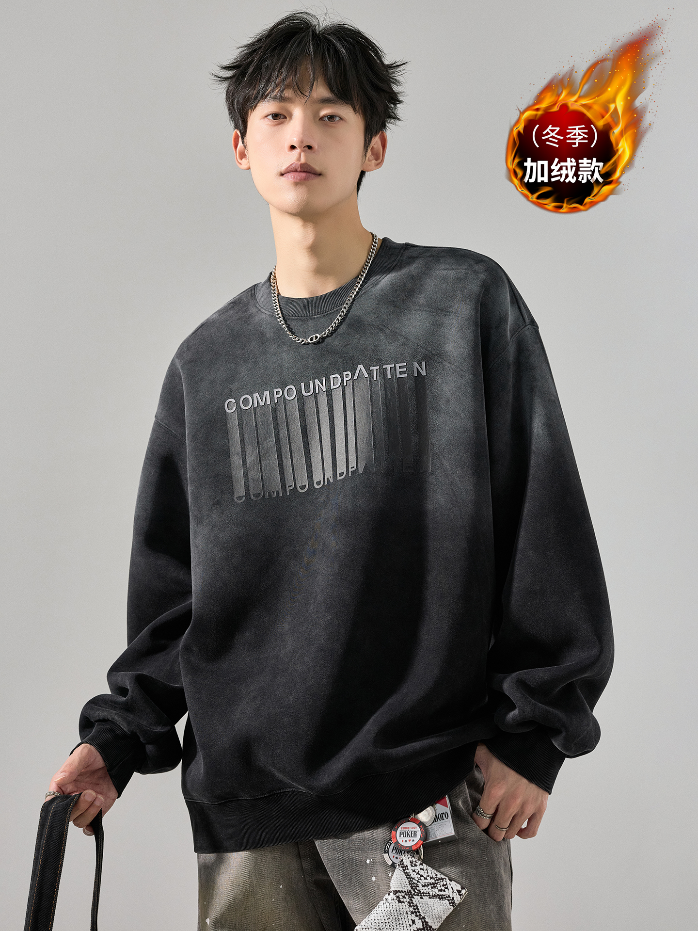卫衣男款秋冬宽松痞帅水洗印花重磅长袖上衣美式高街潮牌圆领男装