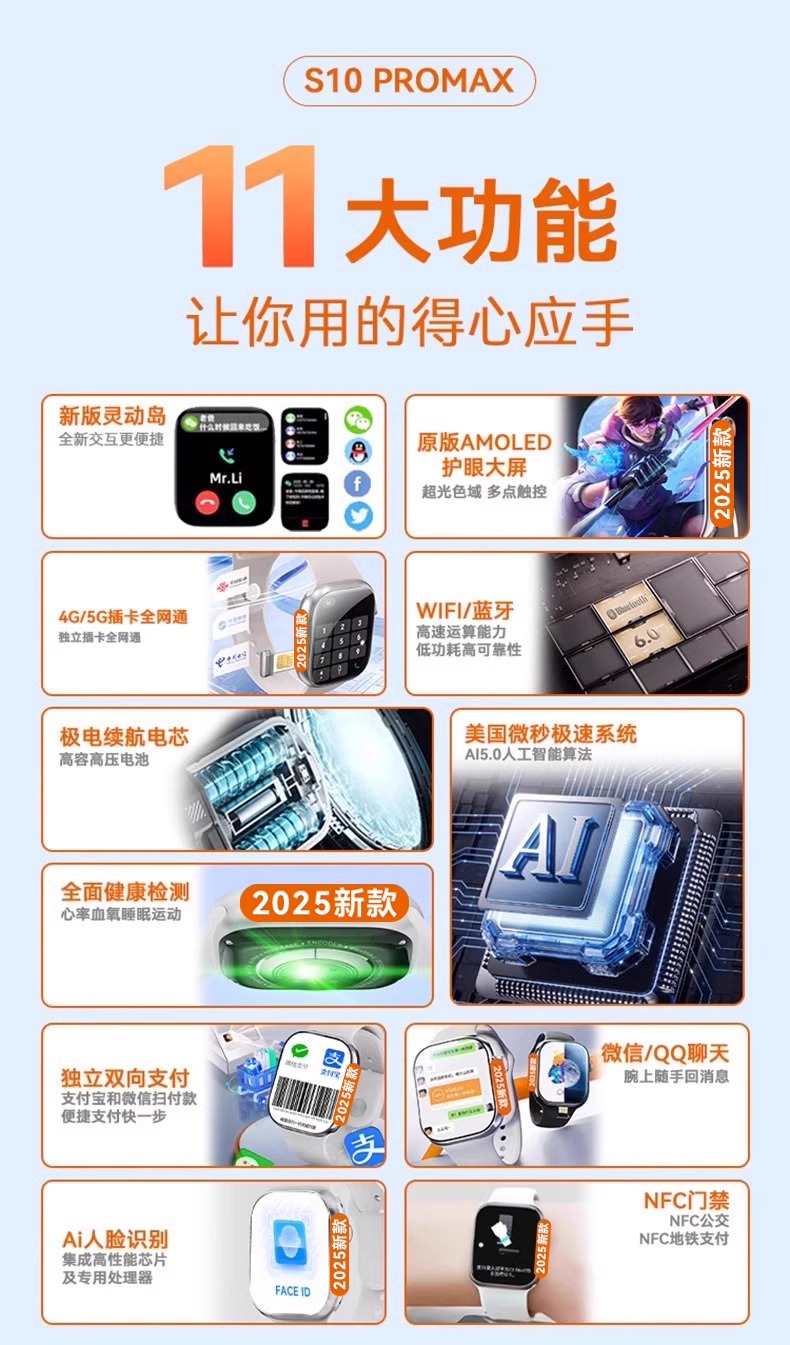 【华强北2025新款S11】智能电话手表可插卡s10Watch蜂窝版S9顶配版ultra青少年男女成人初高中生专用官方旗舰